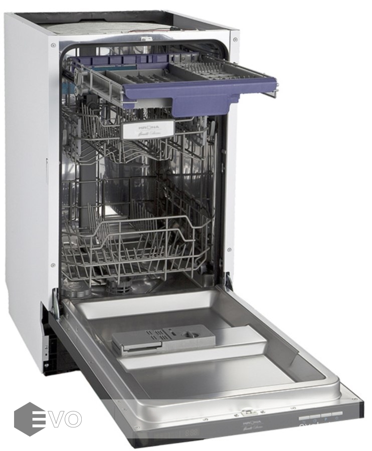 Полновстраиваемая посудомоечная машина KRONA KASKATA 45 BI – посудомоечная машина шириной 45 см вмещает 10 комплектов посуды. Благодаря регулируемой по высоте корзине Dual Space и регулируемому верхнему лотку для столовых приборов загрузка посуды стала максимально комфортной и удобной, а программа половинной загрузки позволяет экономить воду и электроэнергию. Модель оснащена LED-подсветкой Inner Light, индикатором "луч на полу" и регулируемая по высоте верхняя корзина Dual Space.