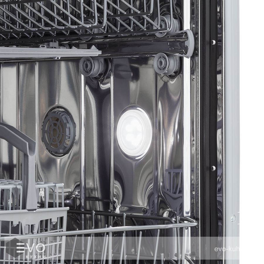 Функции : Дисплей Защита от протечек Звуковой сигнал Интенсивная мойка Использование средств 3 в 1 Лоток для столовых приборов Освещение Отсрочка старта Половинная загрузка Таймер отрочки запуска