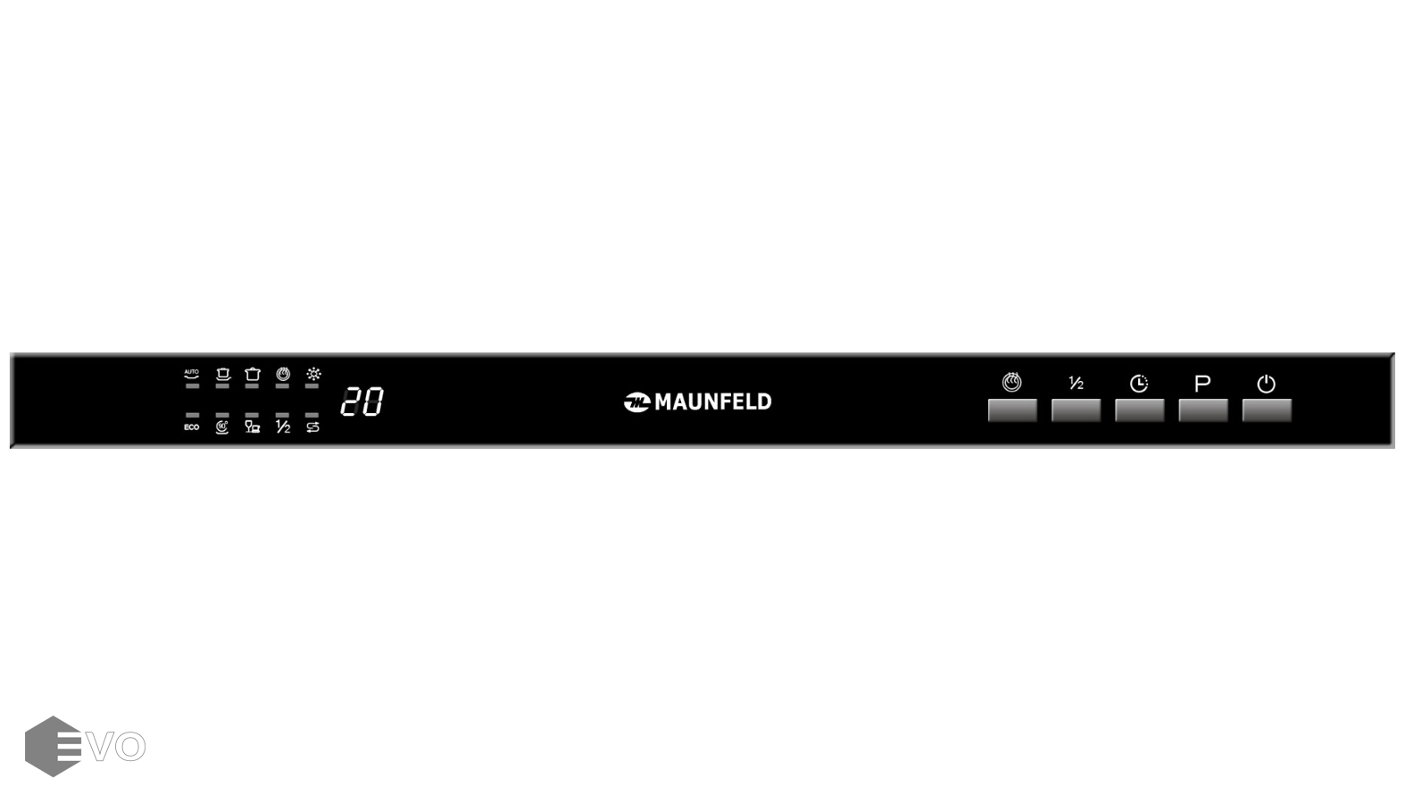 Электронное управление с дисплеем находится на торце загрузочной дверцы. Управление осуществляется с помощью кнопок. Можно выставить время отсрочки старта (1-24 часов) и выбрать программу работы машины: автоматическую (40°-60°С, 120 мин), интенсивную (50°-70°С, 160 мин), стандартную (45°-65°С, 180 мин), эко (45°-65°С, 186 мин), 90 минут (65°С, 90 мин), быструю (45°-55°С, 30 мин), супер-сушку, половинную загрузку (позволяет выбрать для мытья посуды либо верхнюю, либо нижнюю корзину).