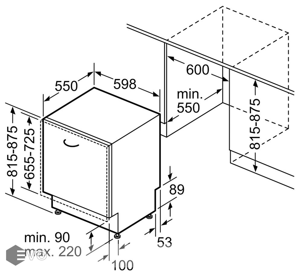 Размеры встраивания (ВхШхГ), мм: | 815-875х600х550 |