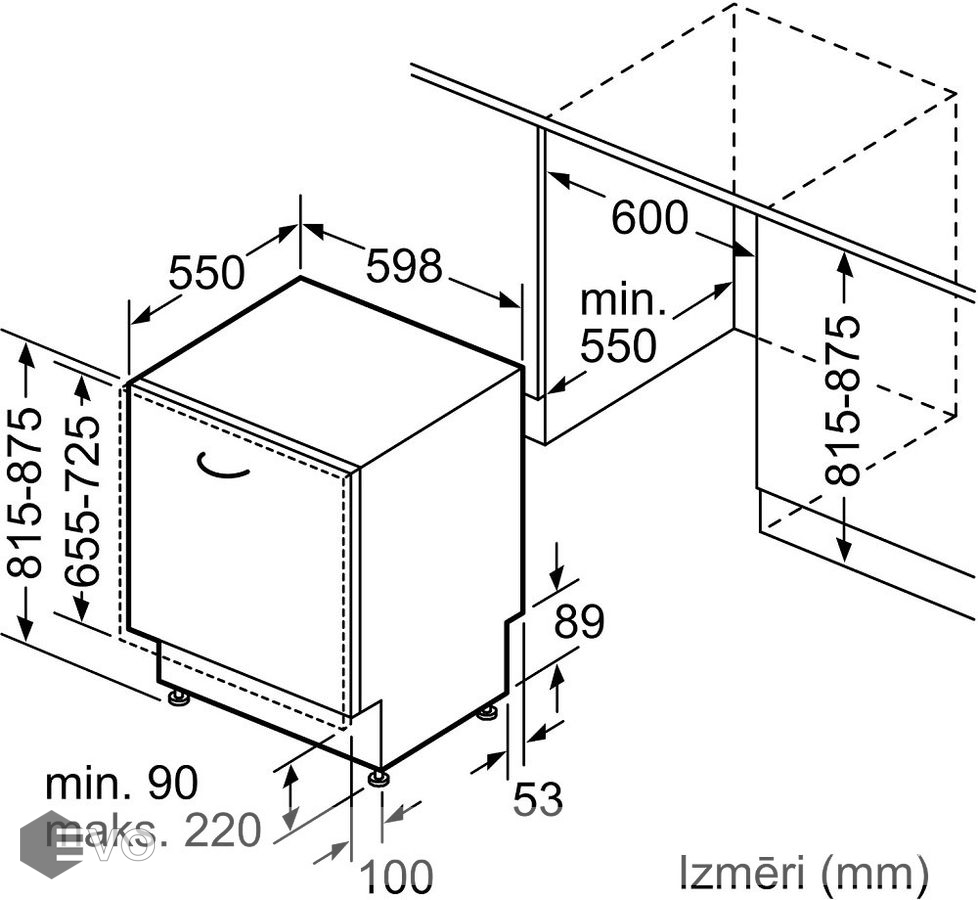 Размеры встраивания (ВхШхГ), мм: 815-875х600х550