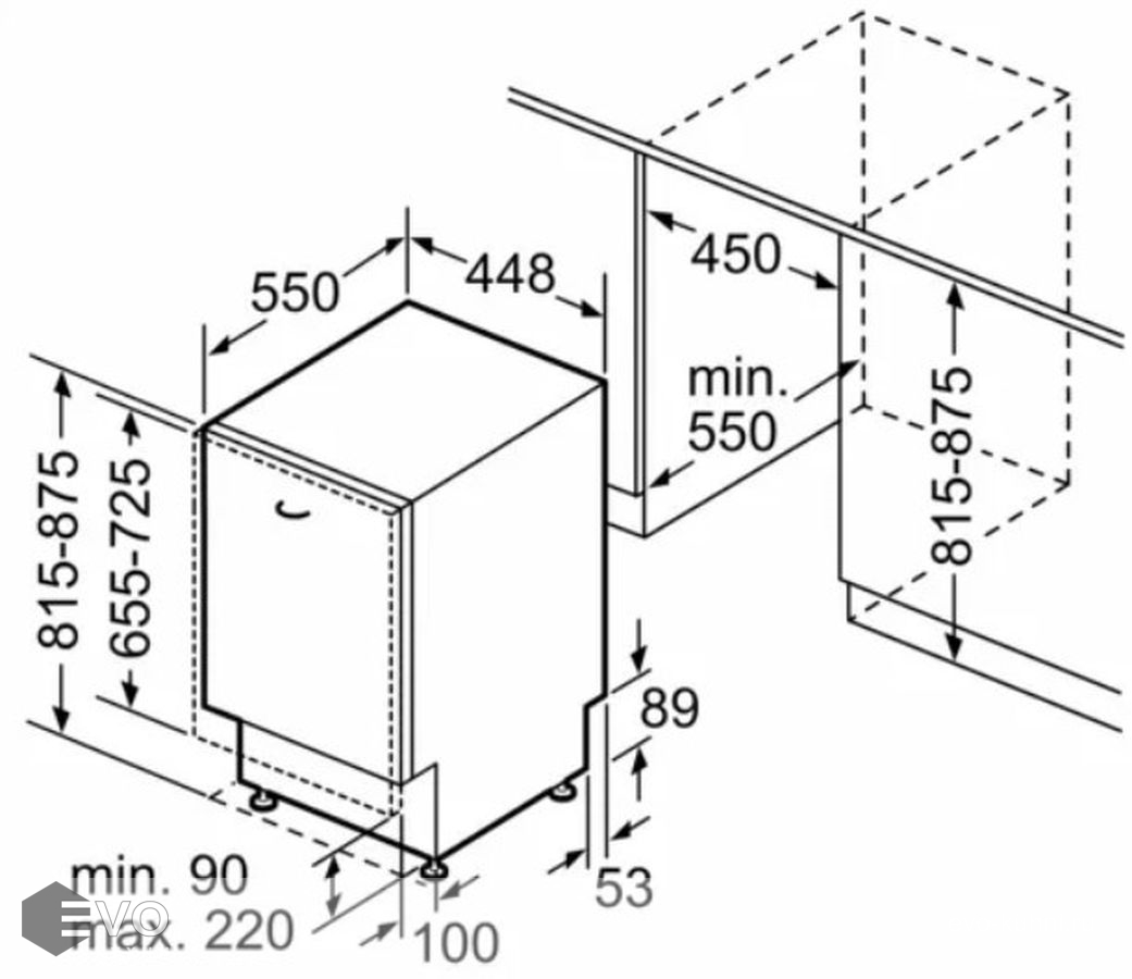 | Размеры встраивания (ВхШхГ), мм: | 815-875х450х550 |