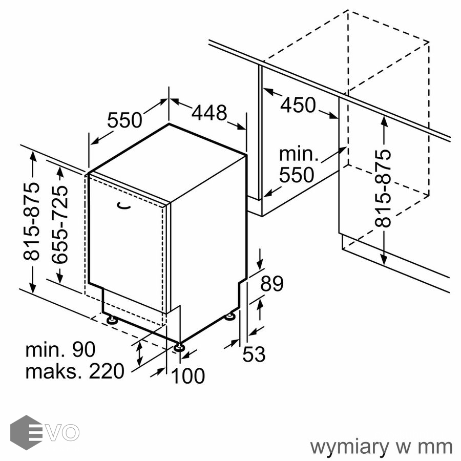 Размеры встраивания (ВхШхГ), мм: 815-875х450х550