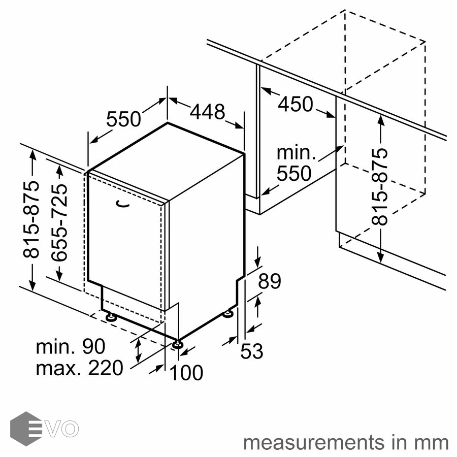 Размеры встраивания (ВхШхГ), мм: | 815-875х450х550 |