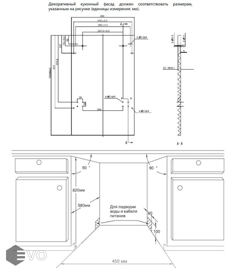Размеры встраивания (ВхШхГ), мм: 820х450х580