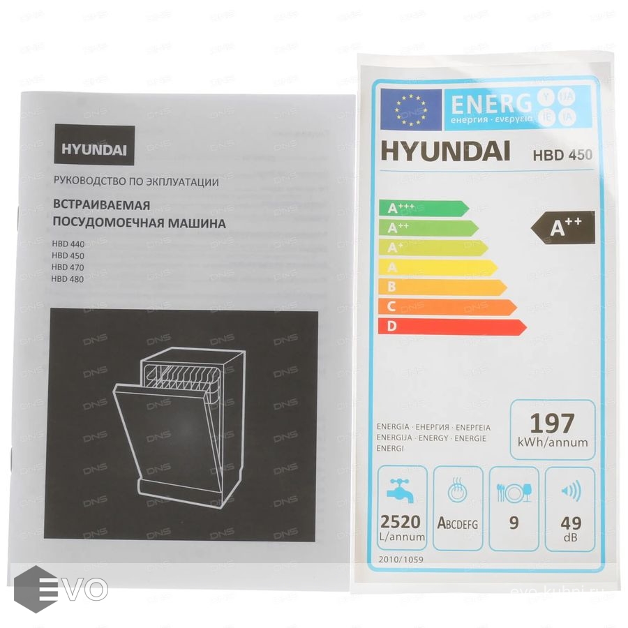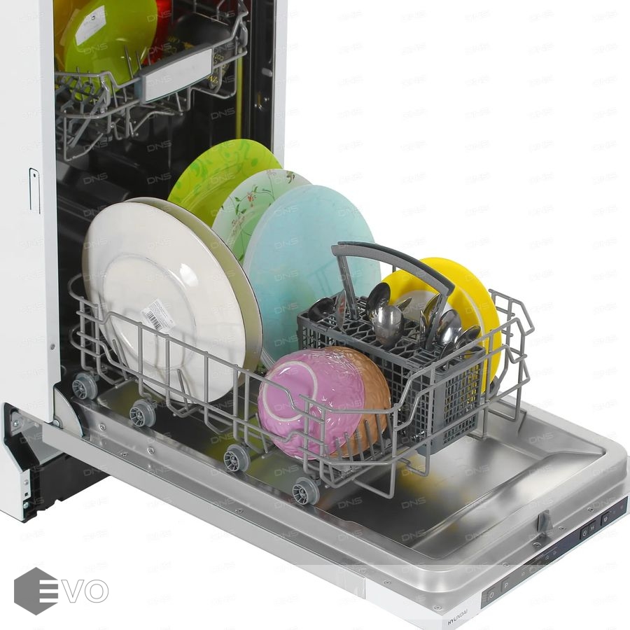 Встраиваемая посудомоечная машина Hyundai HBD 450 позволяет одновременно вместить 9 комплектов.