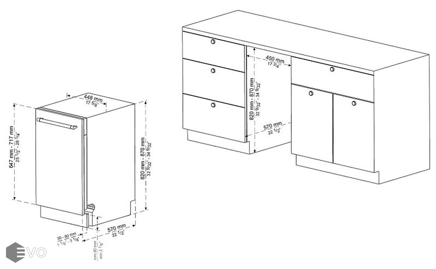 Размеры встраивания (ВхШхГ), мм: | 820-870x450х570 |