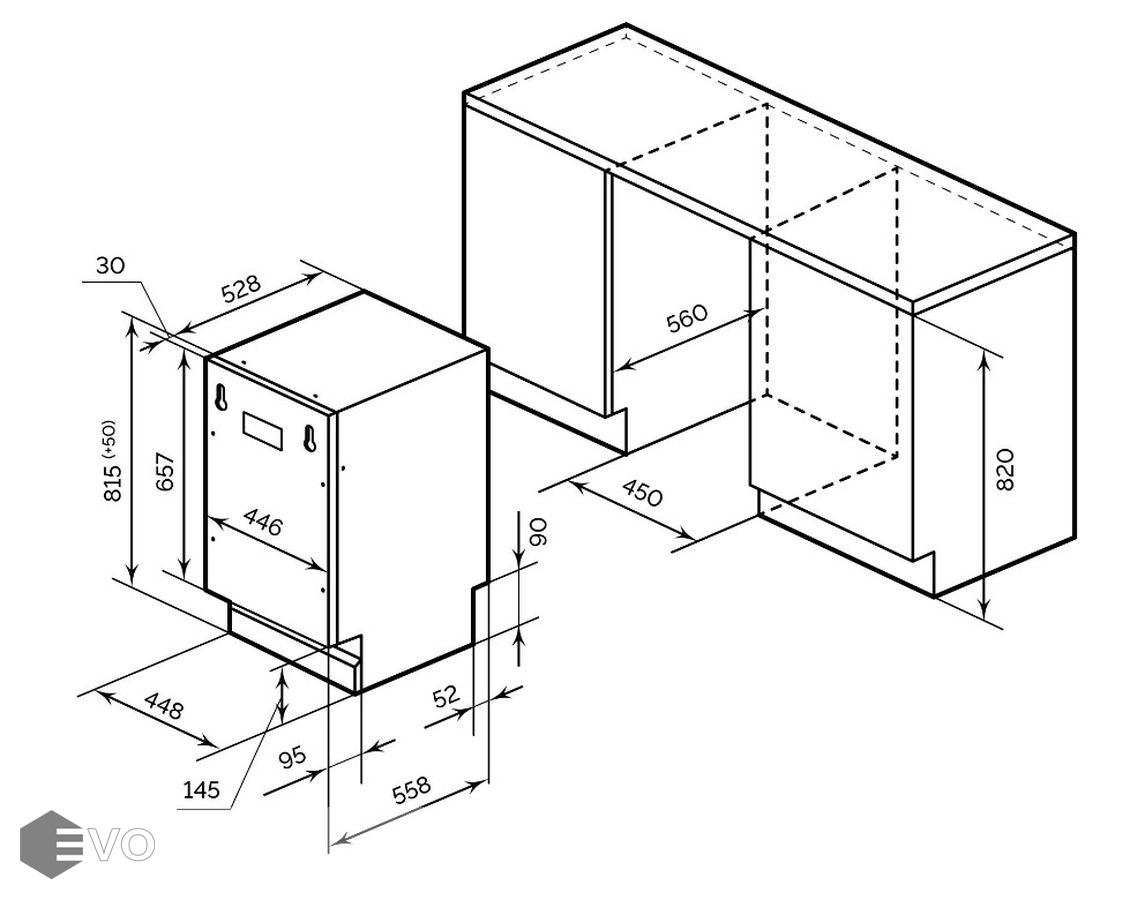 | Размеры встраивания (ВхШхГ), мм: | 820х450х560 |