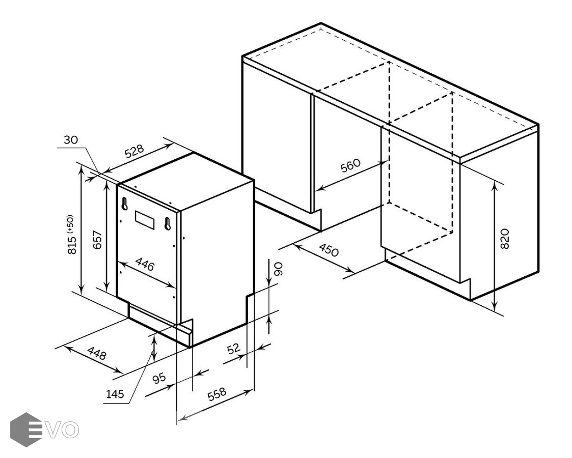Размеры встраивания (ВхШхГ), мм: 820х450х560