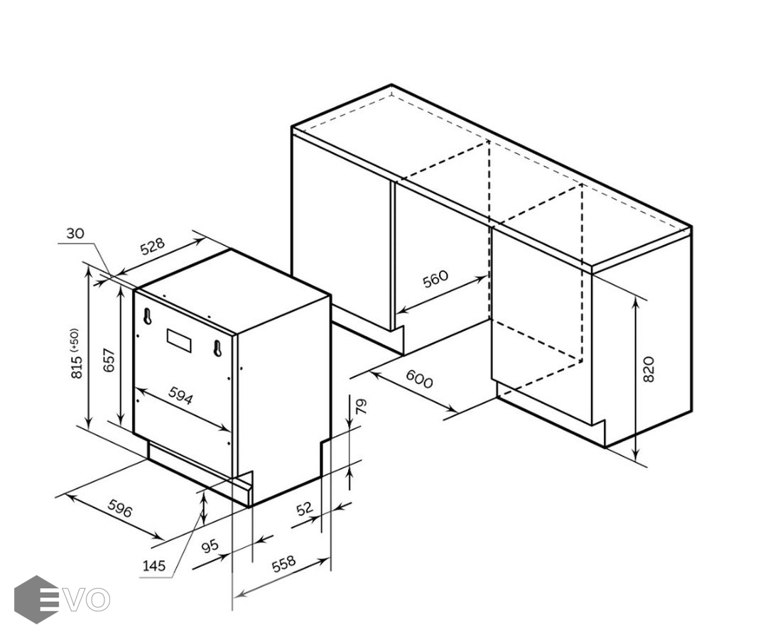 Размеры встраивания (ВхШхГ), мм: 820x600x560