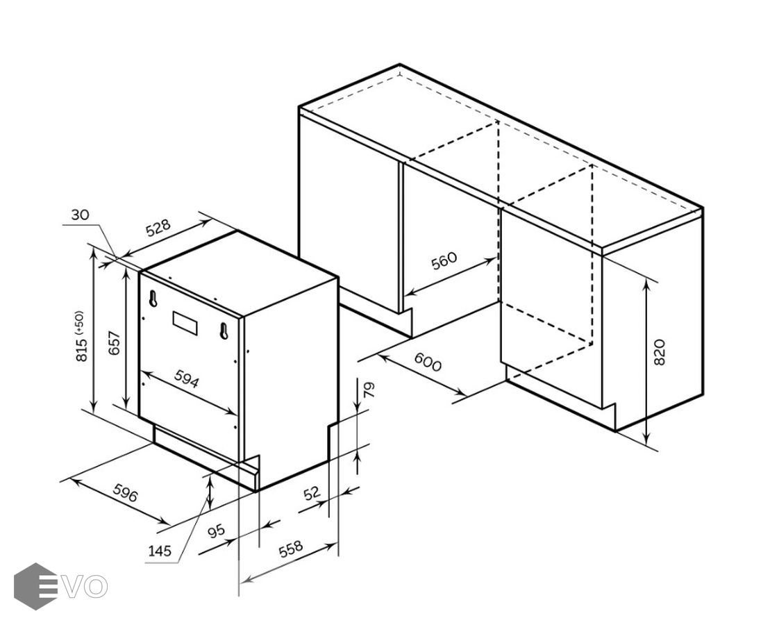 Размеры встраивания (ВхШхГ), мм: | 820x600x560 мм |