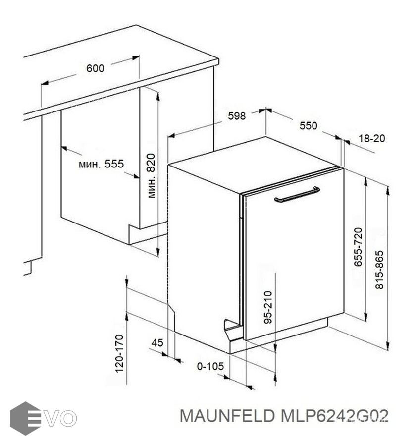 Размеры встраивания (ВхШхГ), мм: 820х600х555 мм
