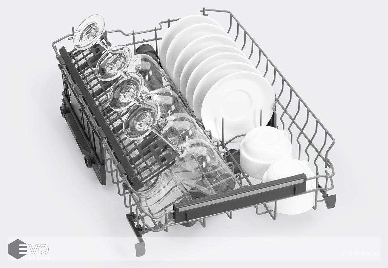 • Верхняя корзина, регулируемая по высоте: На 2 уровня (4 см)