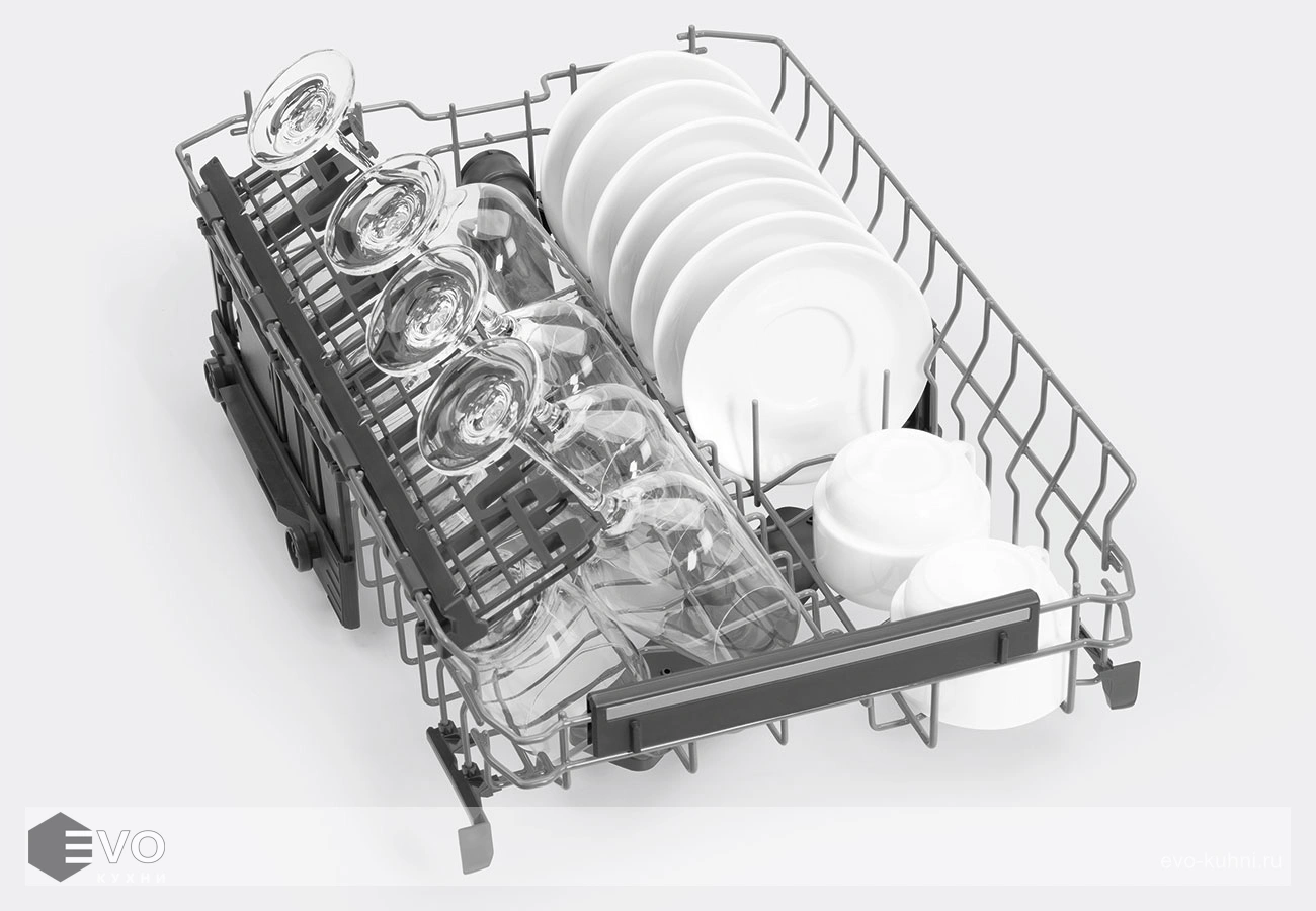 Установлены индикаторы наличия соли/ополаскивателя, смягчение воды, благодаря специальному устройству, которое автоматически открывает дверцу машины по окончании цикла мойки, опция EnerSave обеспечивает идеальное качество сушки посуды и экономит электроэнергию. Данная опция активируется автоматически при выборе любого режима мойки (кроме тех циклов, где не предусмотрена фаза сушки посуды), при желании опцию можно деактивировать перед запуском программы.