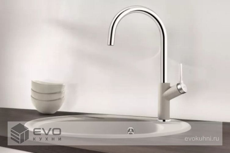 Высокий изогнутый излив смесителя Blanco CARENA помогает наполнению глубоких кастрюль и ваз. Смеситель Blanco CARENA является оригинальным элементом оформления интерьера кухни, поскольку имеет стильный дизайн.