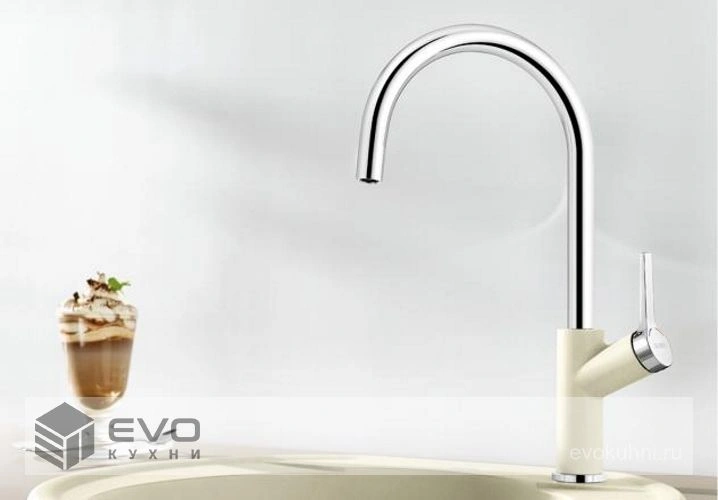 Высокий изогнутый излив смесителя Blanco CARENA помогает наполнению глубоких кастрюль и ваз. Смеситель Blanco CARENA является оригинальным элементом оформления интерьера кухни, поскольку имеет стильный дизайн.