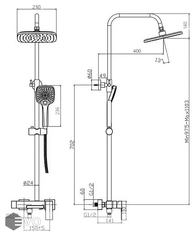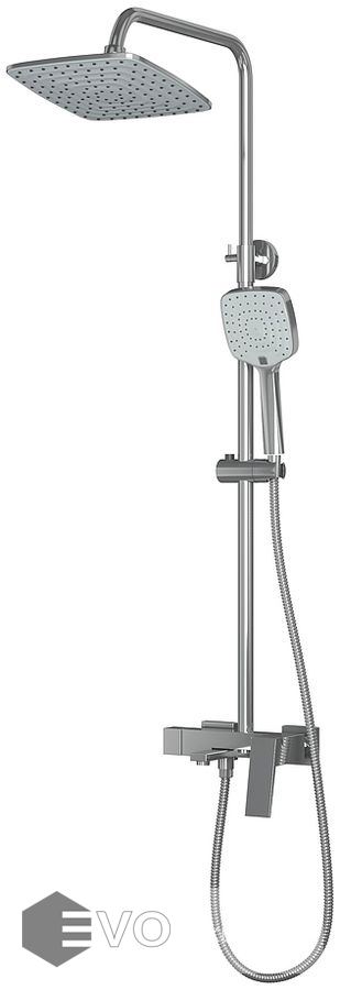 Комплектация: Душевая лейка, Тропический душ, Душевая штанга, Держатель душевой лейки, Шланг, Смеситель, Переключатель с керамическими пластинами.