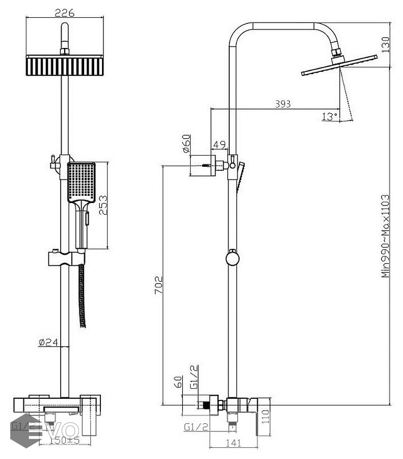Модель оснащена прямоугольными лейкой и верхним душем. Керамический картридж обеспечивает плавный ход рычага смесителя, контроль и точность при выборе напора и температуры воды.