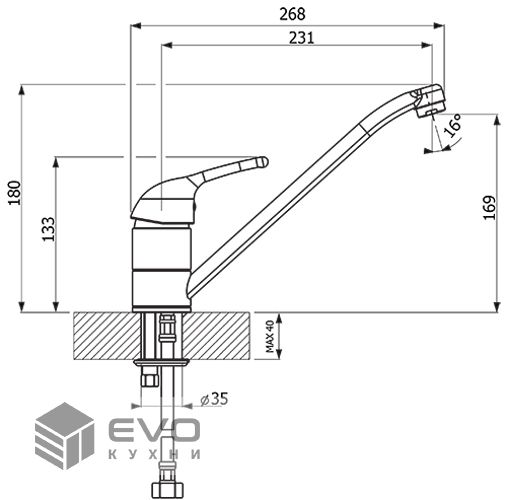 - высота излива 169 мм