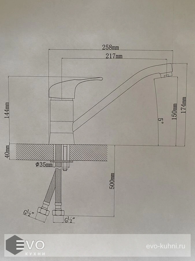 Длина излива: 217 мм