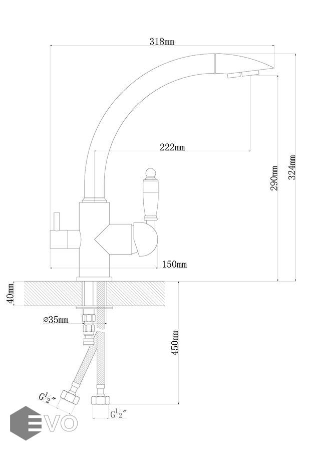 Смеситель однорычажный с подключением к фильтру питьевой воды