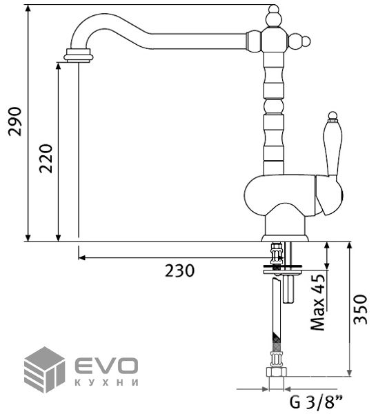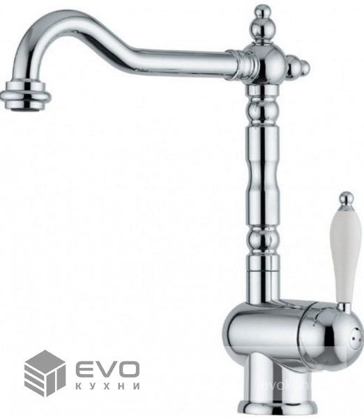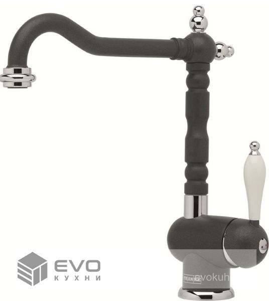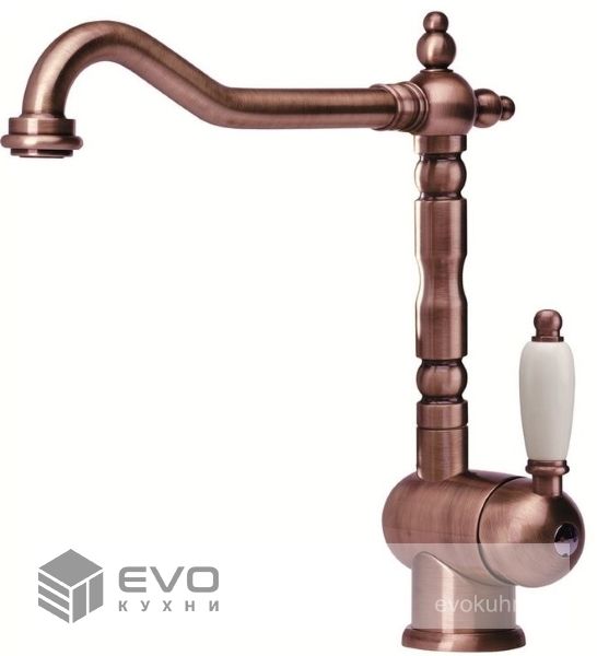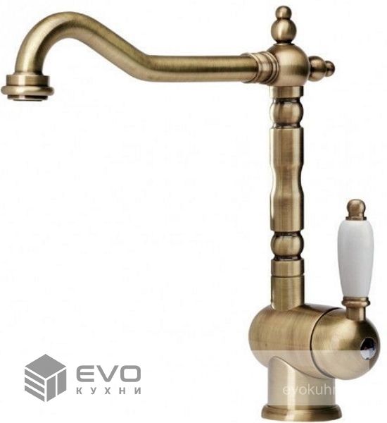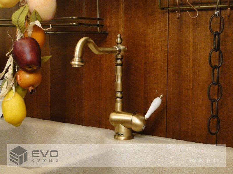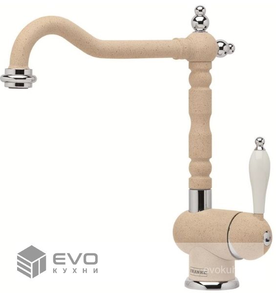 Винтажный кухонный смеситель Franke Old England (бронза, гранит, бежевый, медь, золото, хром) станет эффектным элементом декора классической кухни. Модель с боковым однорычажным управлением имеет угол поворота 360 градусов, что увеличивает функциональные характеристики прибора. Декоративное изделие будет прекрасно смотреться в кухне средних габаритов в сочетании с мойками с напылением под золото, а также с моделями из фрагранита.
