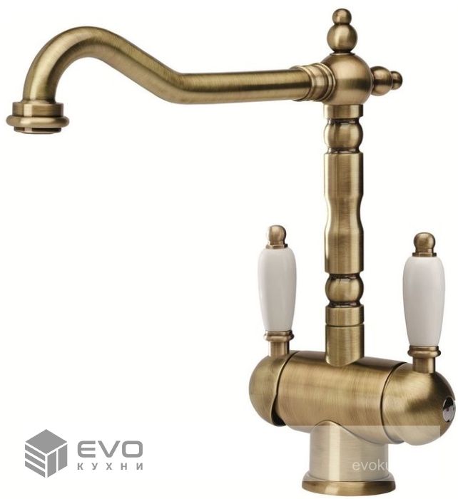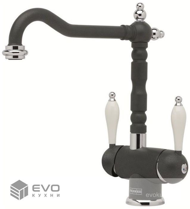 Элегантный двухвентильный смеситель Franke Old England Bicomand (бронза, графит, медь, золото) в изящном ретро-исполнении. Неограниченный угол вращения излива расширяет функциональные возможности изделия. Смеситель подходит для среднегабаритных моек из фрагранита и нержавеющей стали с титановым напылением.