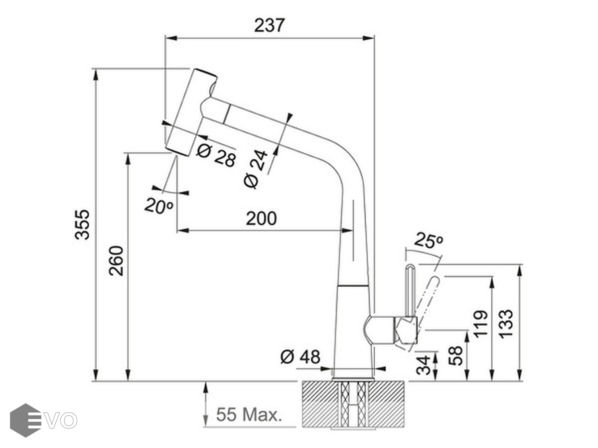 Смеситель FRANKE Icon с выдвижным шлангом, оптика стали