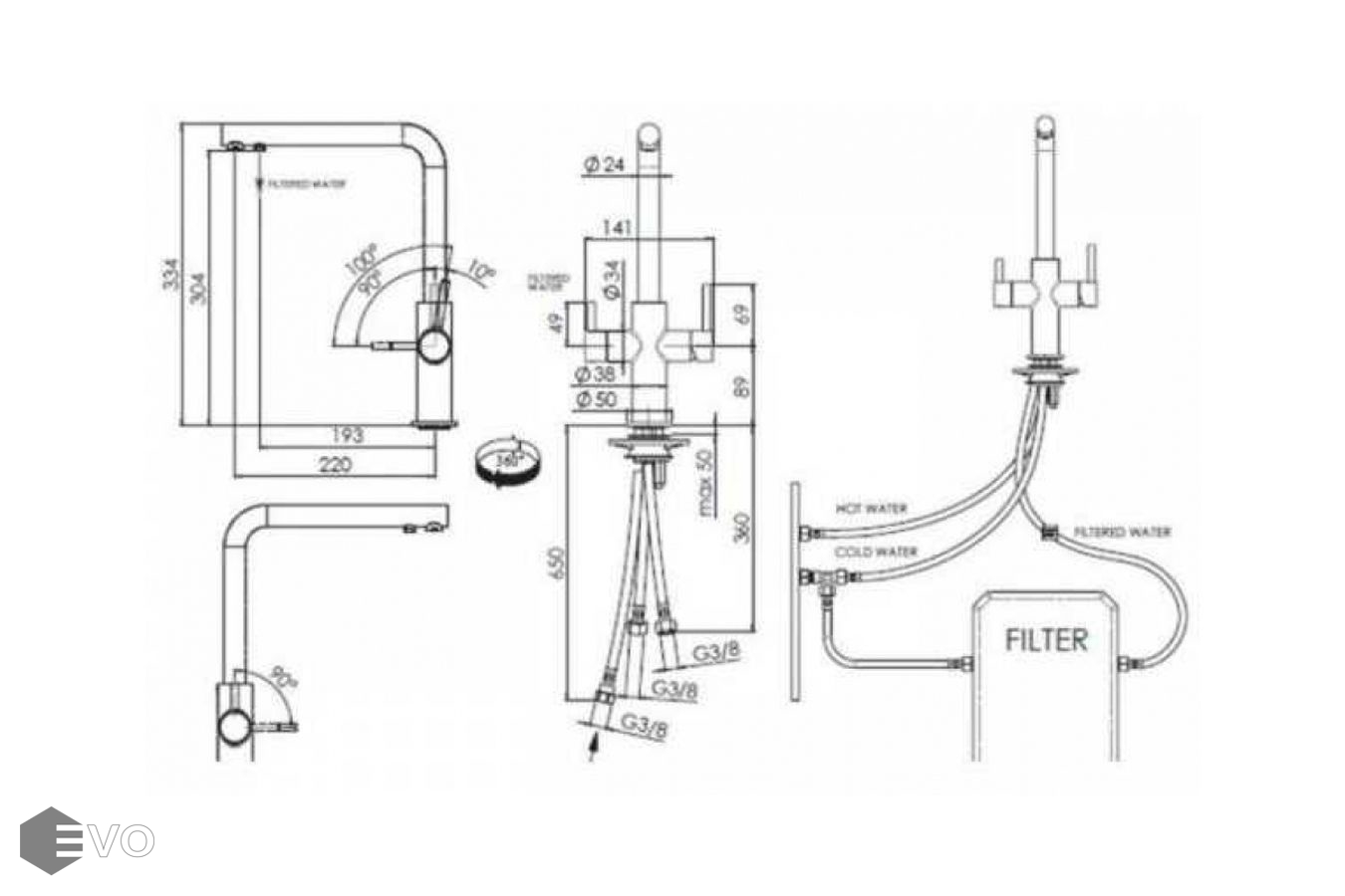 - Высота смесителя 334 мм