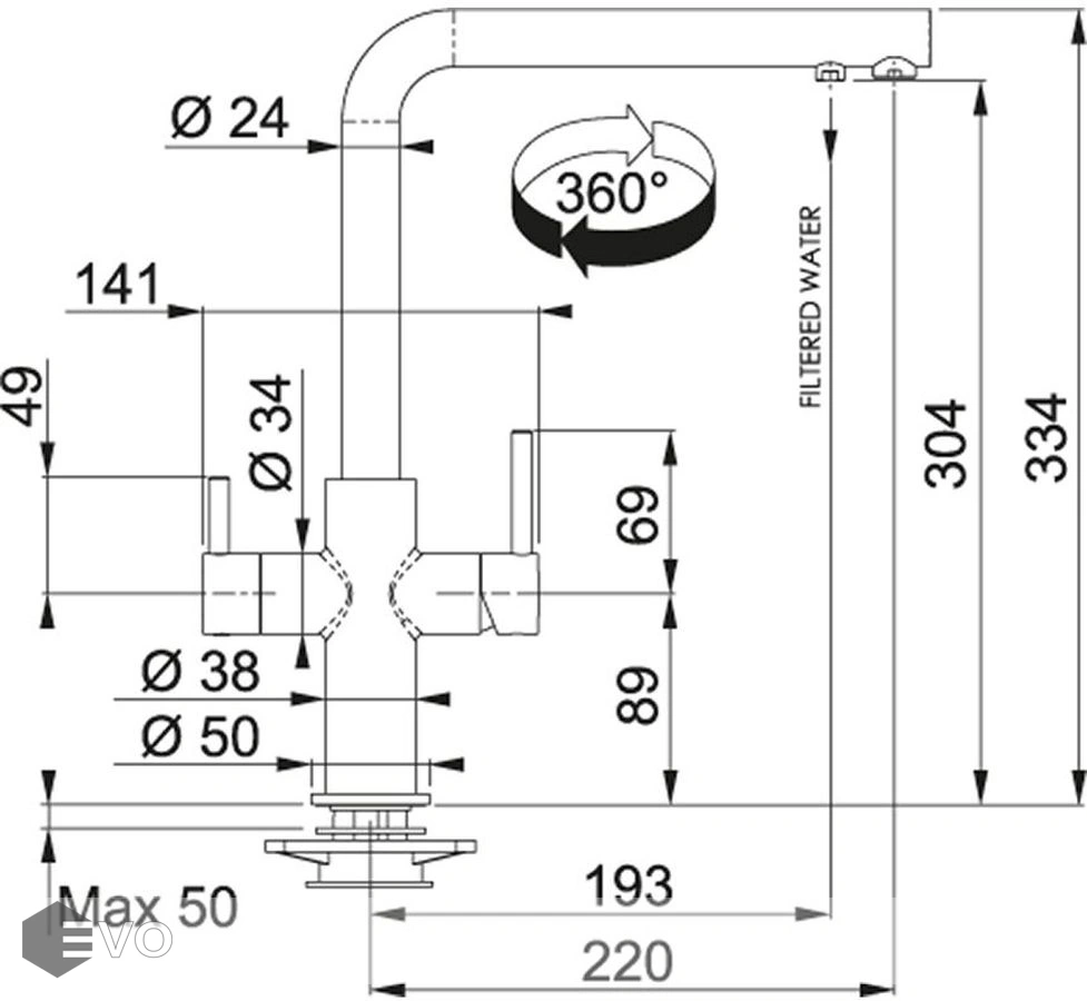- Высота смесителя 334 мм