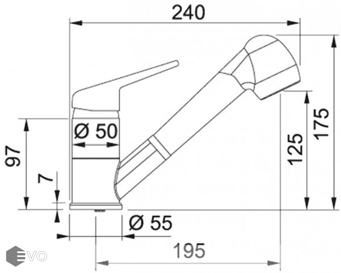 Смеситель FRANKE NOVARA PLUS, серый, с выдвижным шлангом