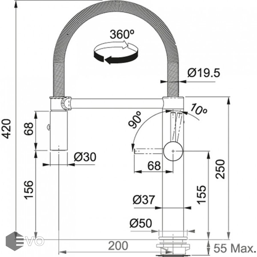 Смеситель Franke Pescara Semipro L (хром) с выдвижным шлангом с возможностью переключения режима струя/душ.