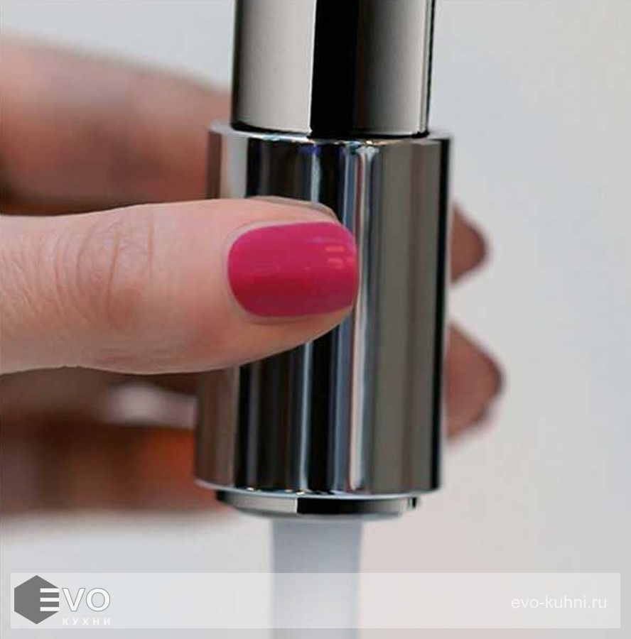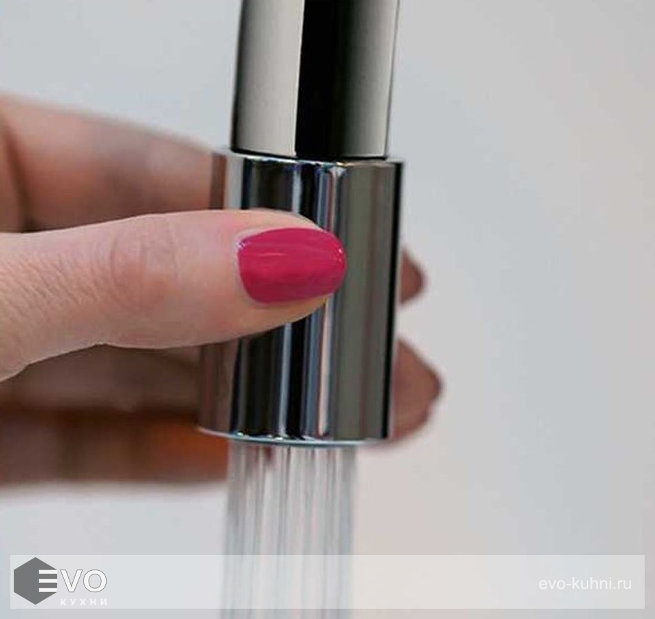 Поворот ручки управления смесителя вперед облегчает управление струей воды, в том числе при расположении смесителя близко к стене.
