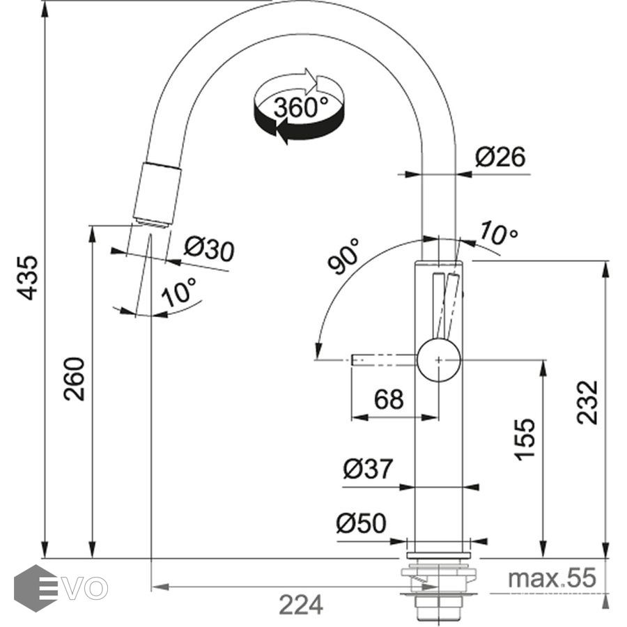 • Поворотный носик Up & Down (Up-позиция для обычной струи, Down-позиция для душа)