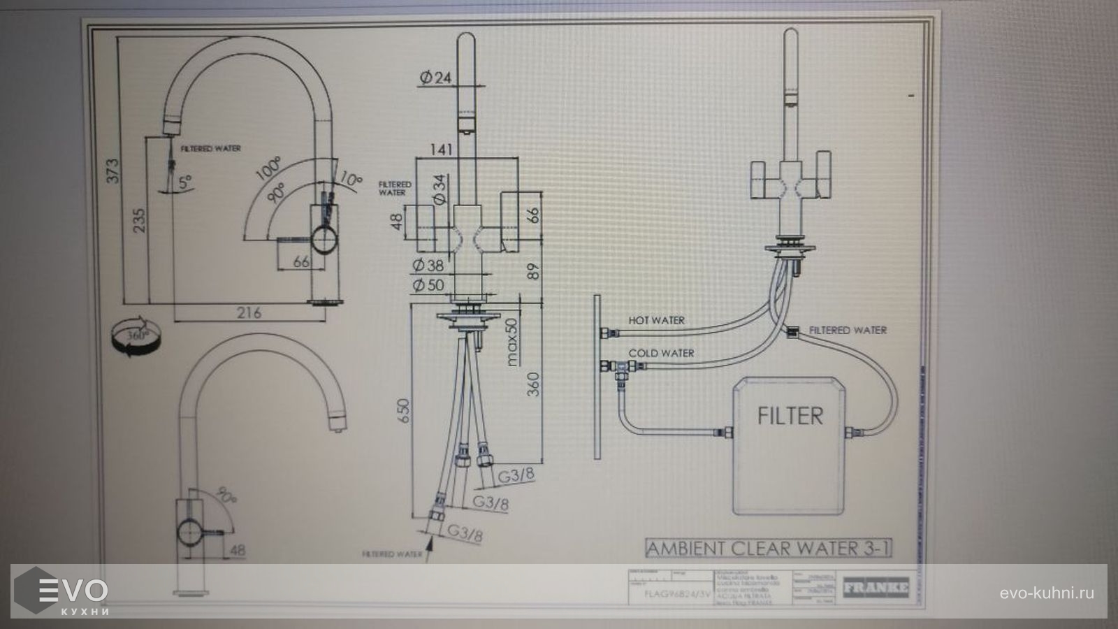 Смеситель Franke Ambient Clear Water (оптика стали) с переключателем на фильтр - это надежное и функциональное решение для современной кухни.