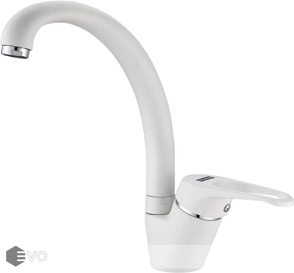 Если у вас белая кухонная мойка из натурального или искусственного камня, эта модель может стать ее идеальным дополнением. Дизайн смесителя вызывает ассоциации с лебедем — красиво изогнутый излив и направленный вправо рычаг напоминают плывущую птицу.