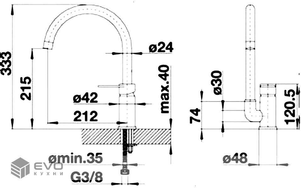 РАЗМЕР СМЕСИТЕЛЯ | |