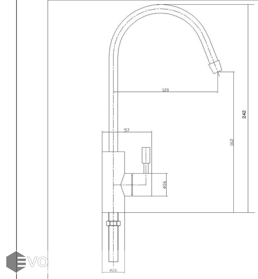 Кран изготовлен из латуни с отделкой под хром. Может быть установлен на мойку или столешницу.