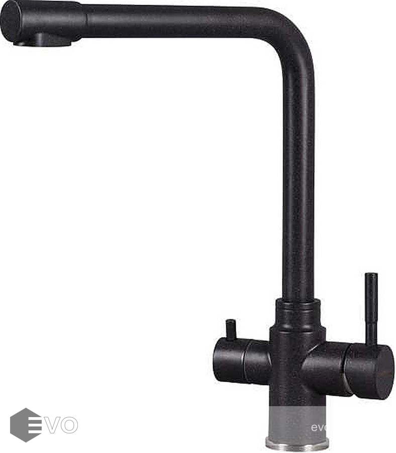 Модель оснащена подключением к фильтру с питьевой водой и рычагом, обеспечивающим контроль и точность при выборе напора и температуры воды.