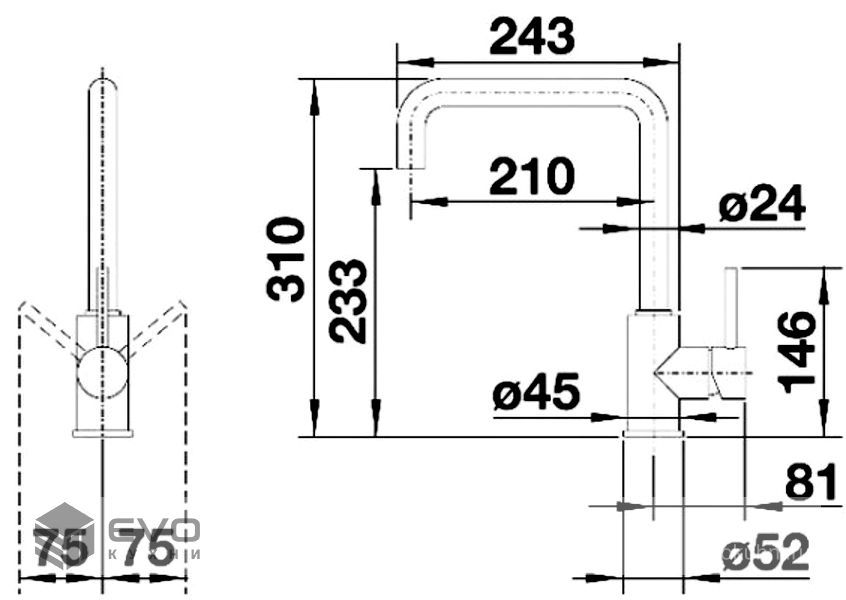 РАЗМЕР СМЕСИТЕЛЯ | |