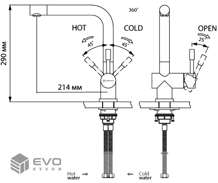 - Современный дизайн и удобство в использовании благодаря высокому изливу.