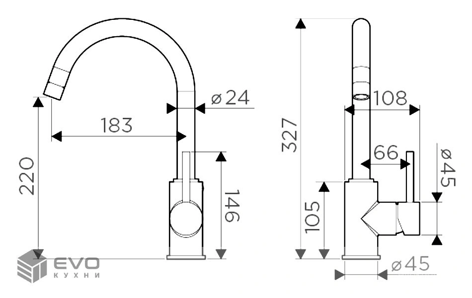 | Длина излива | 183 мм |