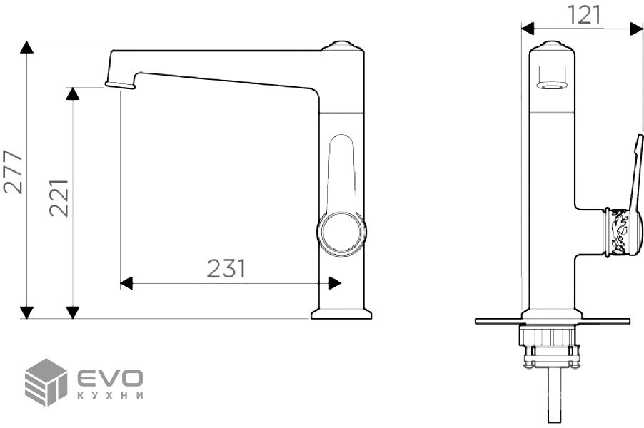 - Высокий излив обеспечивает максимально удобное использование смесителя;