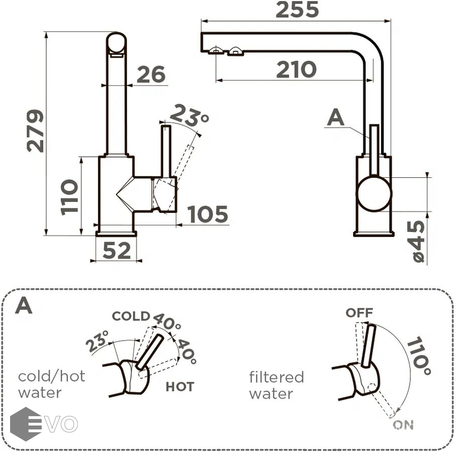 - Особенности: встроенный кран для питьевой воды, система рычага 2 в 1 Multi