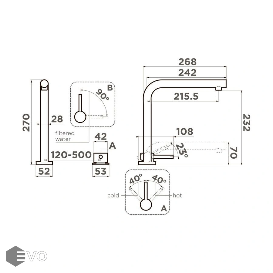 • Высота излива: 232 мм