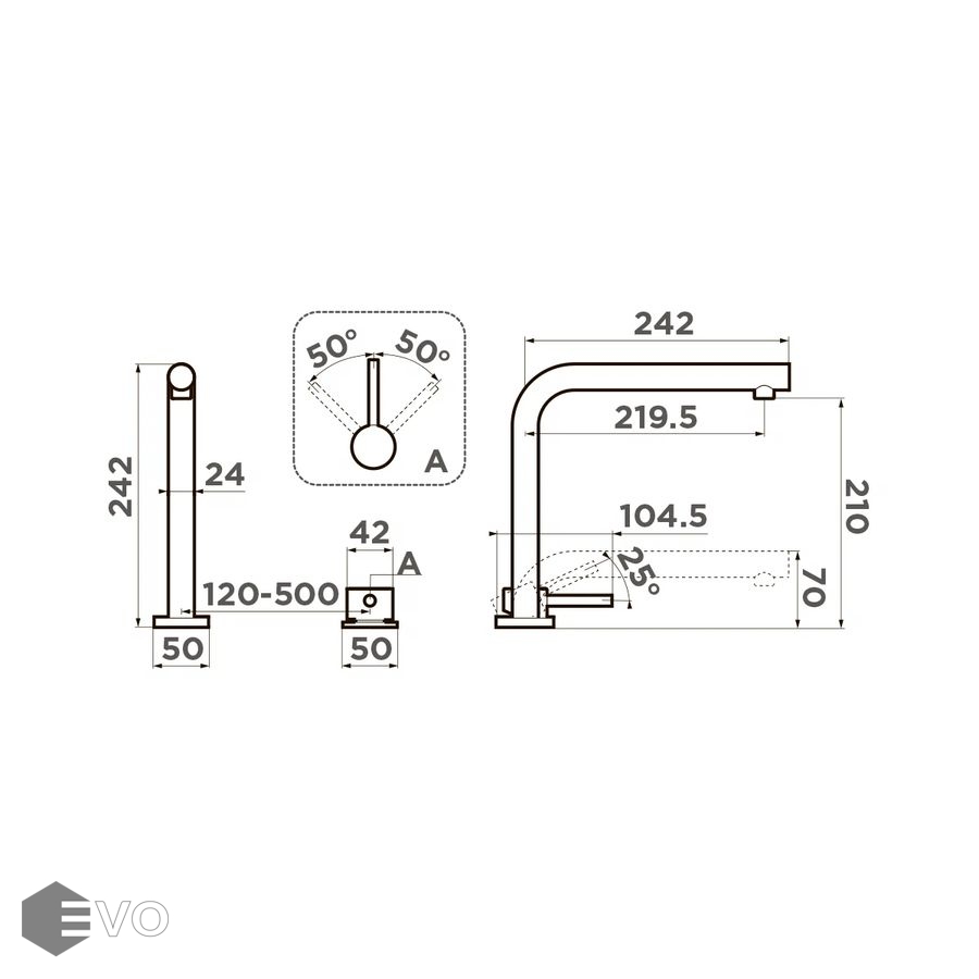 - Высота смесителя: 242 мм