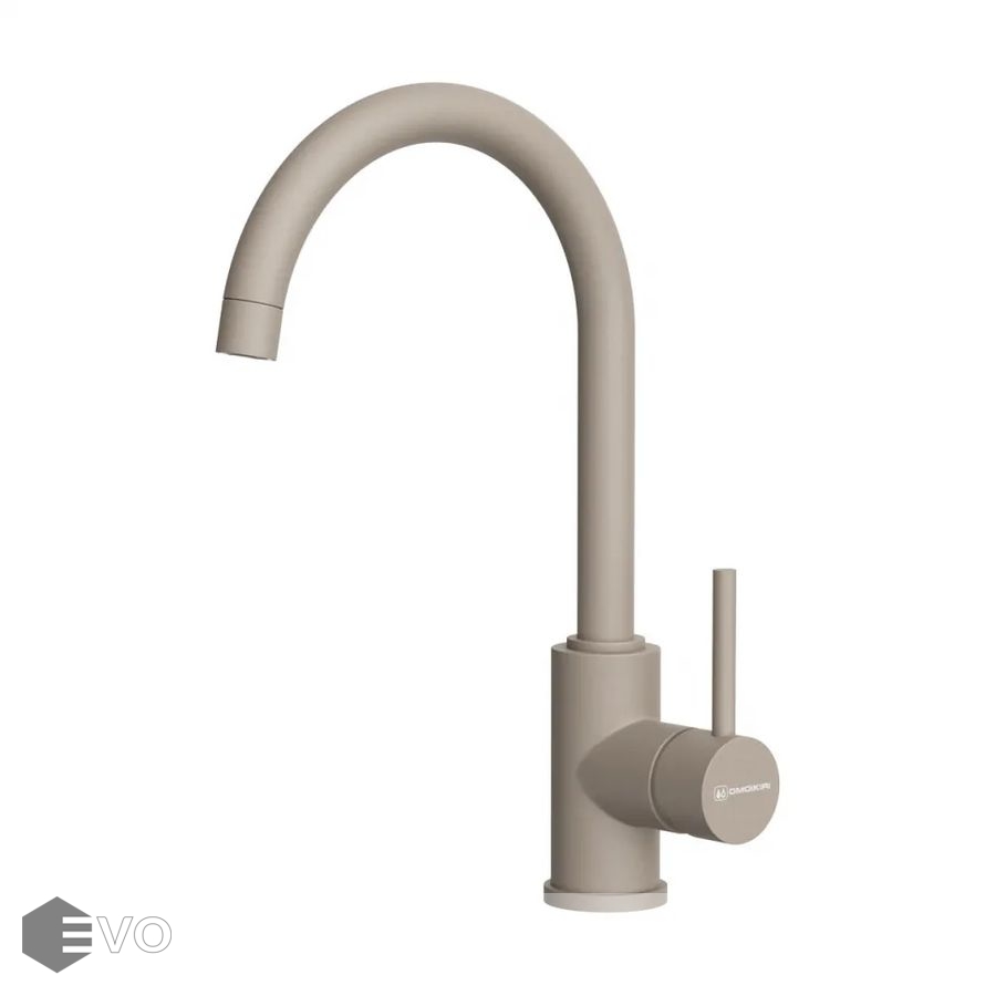 Практичный однорычажный смеситель Omoikiri Shinagawa-P-SA латунь/бежевый выполнен в современном стиле и снабжен высоким поворотным изливом.