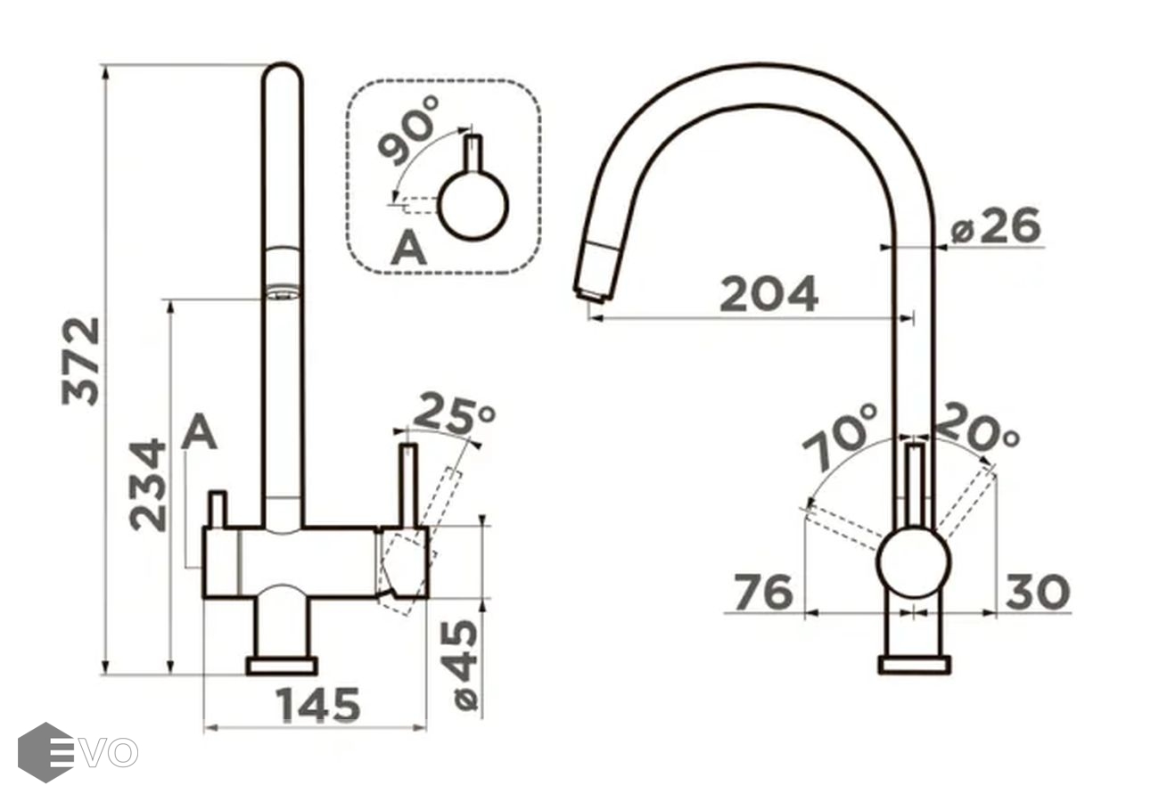 Современный дизайн и удобство использования благодаря высокому изливу.