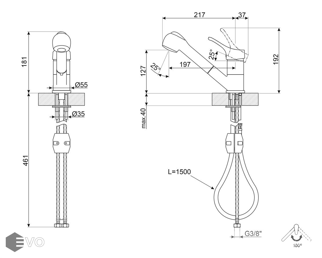 - Поворотный излив 100°