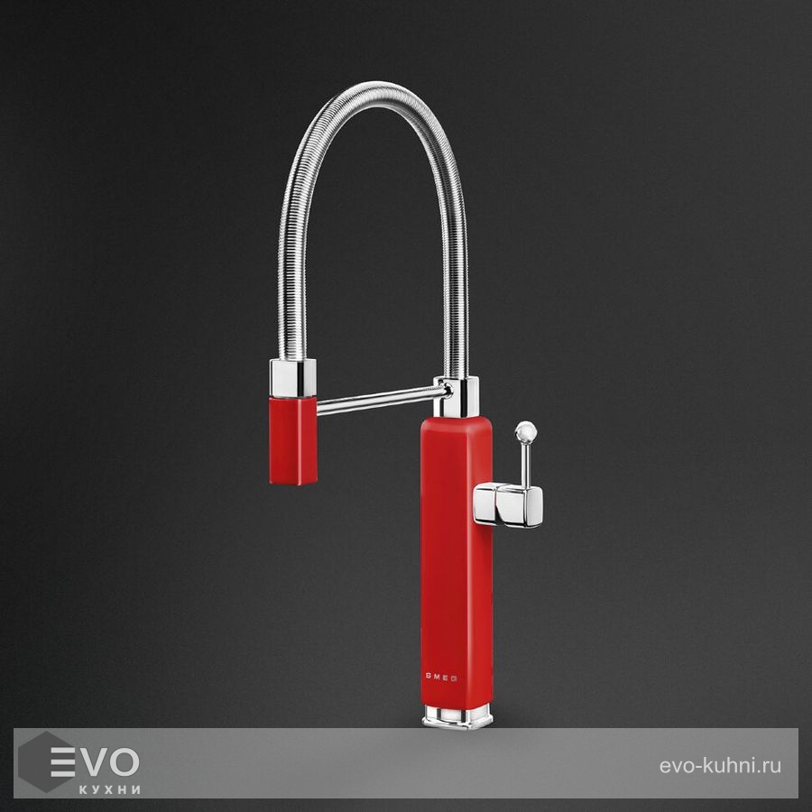 Однорычажный смеситель SMEG MDF50RD выполнен в красном цвете. Имеет поворотный излив. Оснащен функцией ESC, направленной на экономию воды.